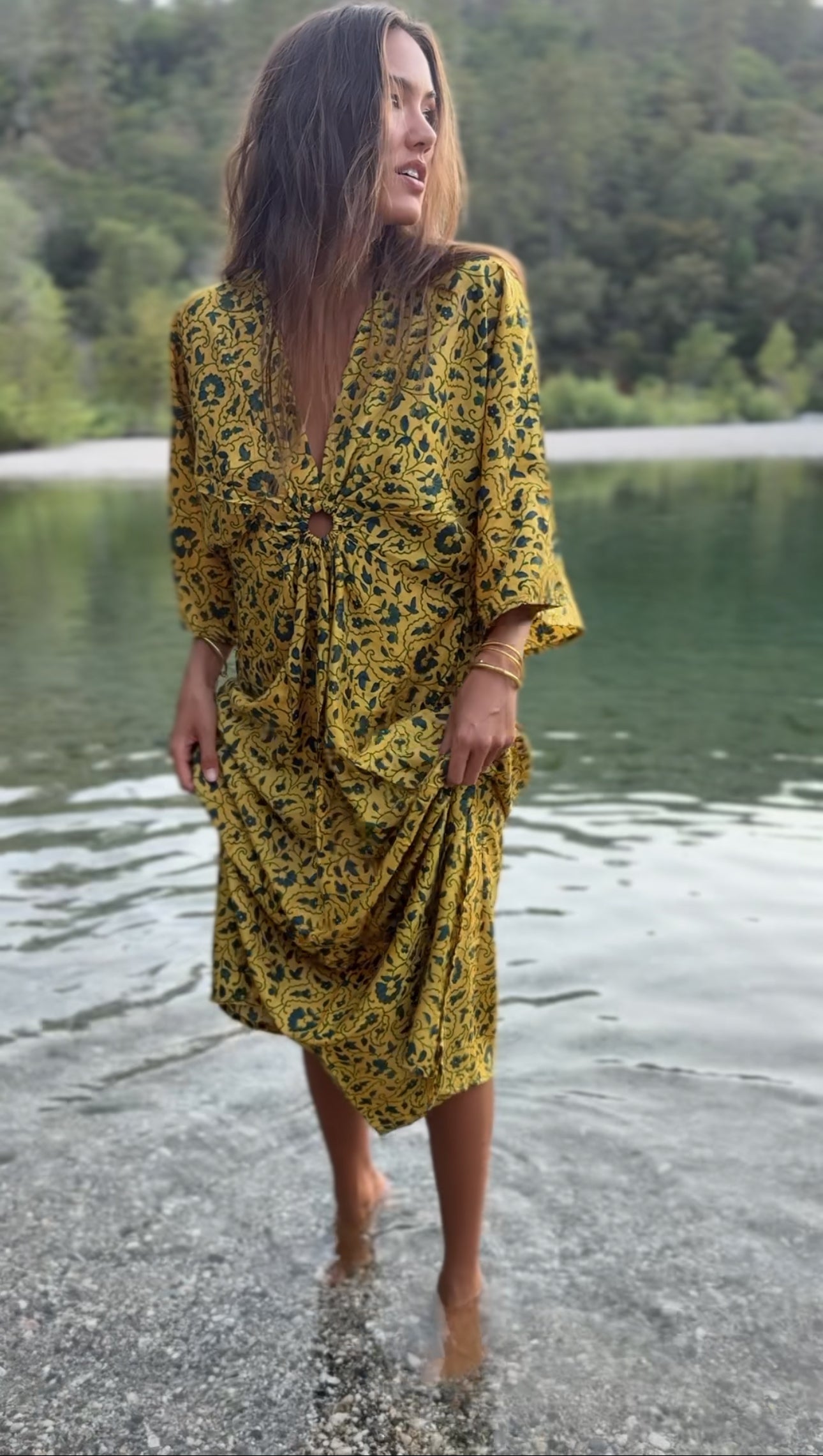 Cut in our signature free-flowing shape with relaxed sleeves and a full-length drape, the Aria moves like music—fluid, feminine, and timeless. Side pockets add a whisper of utility, while the matching headband and scrunchie create a styled set perfect for weddings, evenings out, or creative expression at festivals and gatherings.