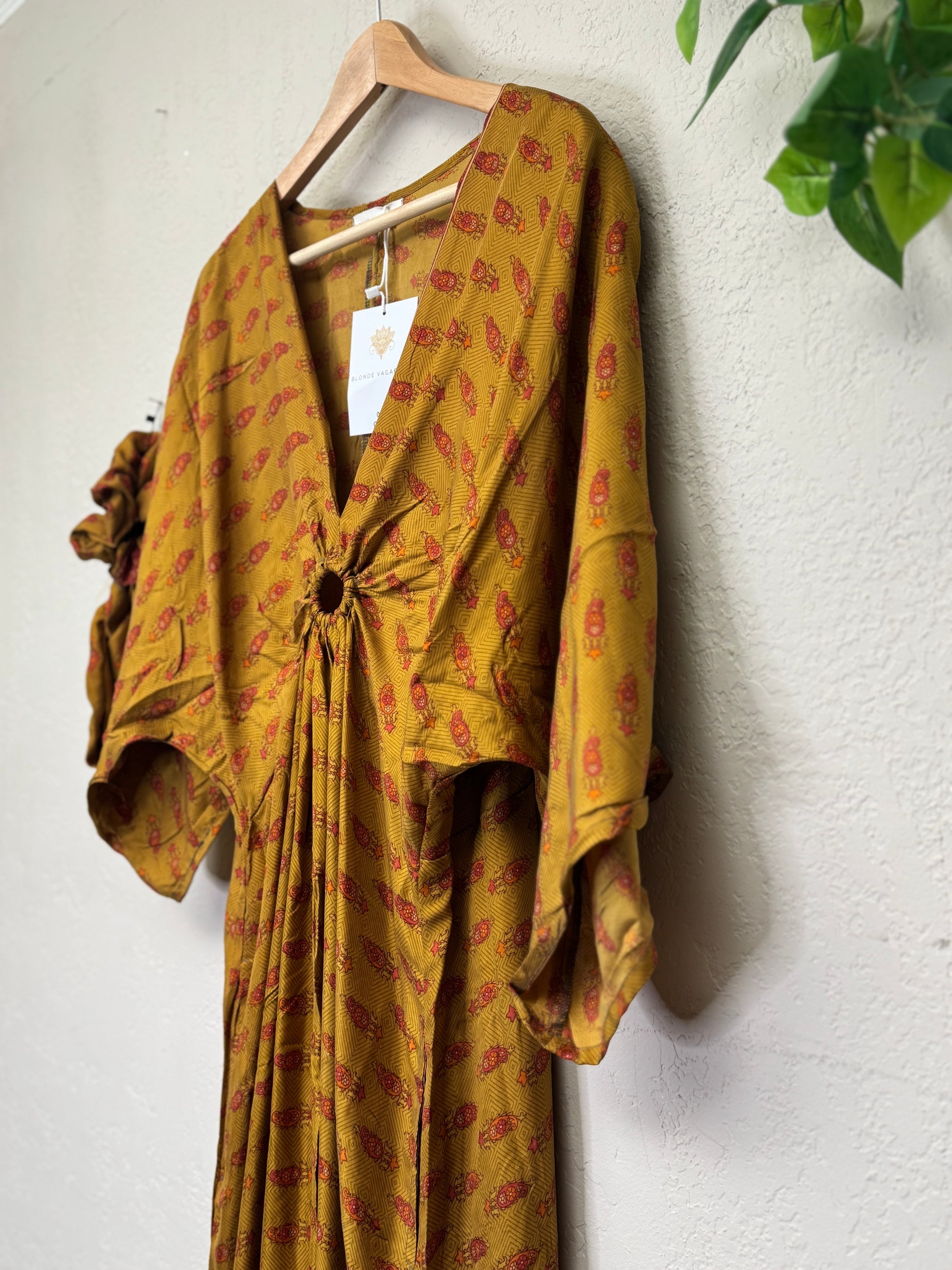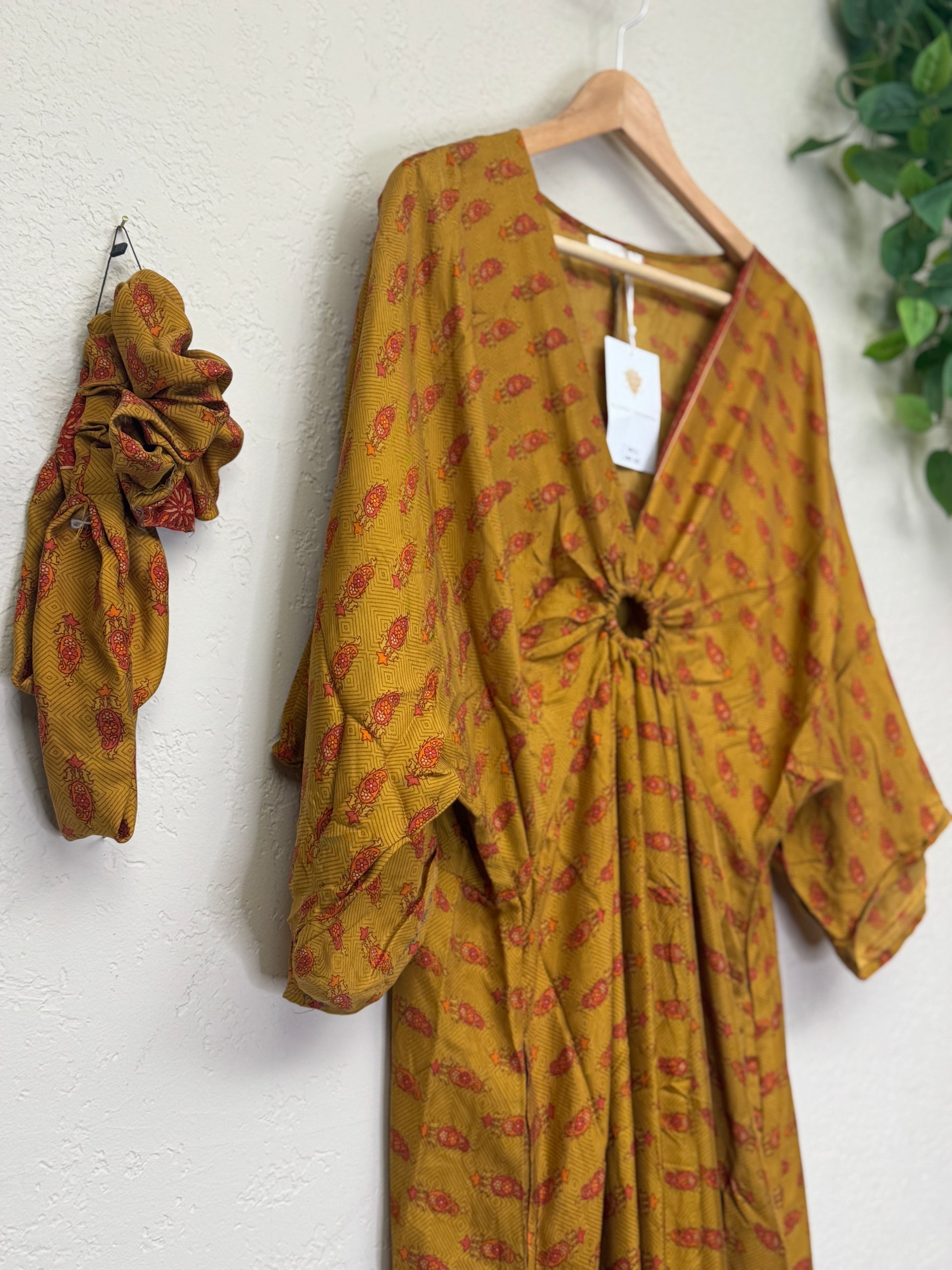 Cut in our signature free-flowing shape with relaxed sleeves and a full-length drape, the Aria moves like music—fluid, feminine, and timeless. Side pockets add a whisper of utility, while the matching headband and scrunchie create a styled set perfect for weddings, evenings out, or creative expression at festivals and gatherings.